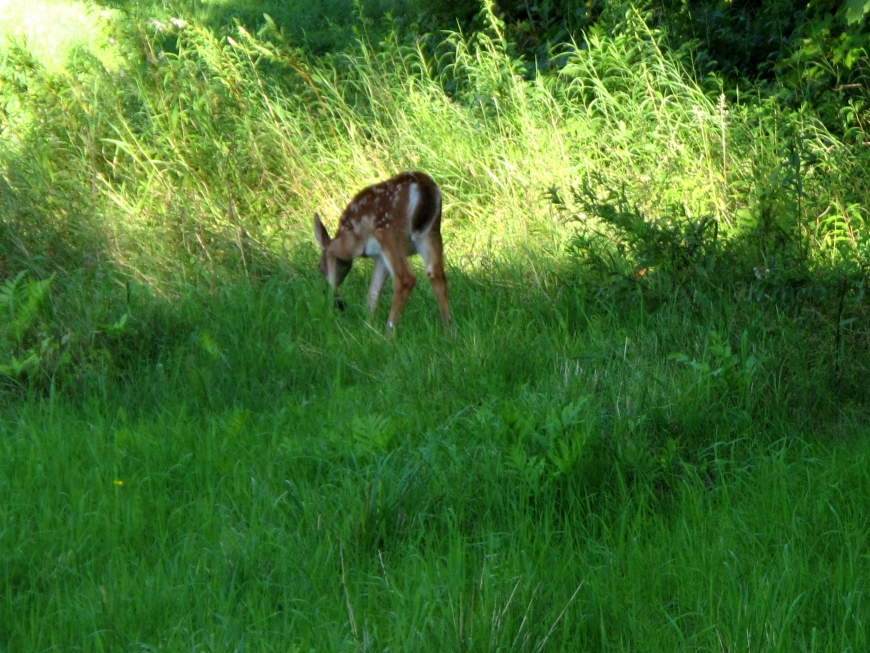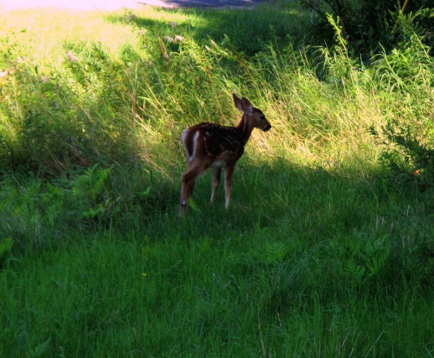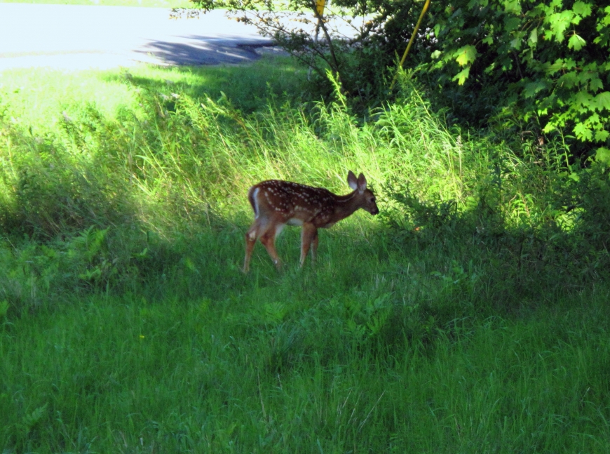 While on our way back from Canton, we spotted a small fawn walking along the side of the road. After seeing us, it ran into the woods where its mother was waiting.