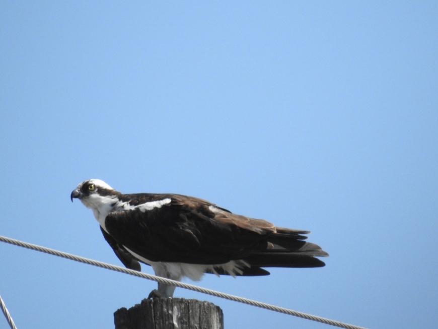 I work as a Watercraft Inspection Steward to manage invasive species and, when the boat traffic is slow, I try to see what the feathered fellas are up to! There are many places for them to hang out at the boat launch: grasses and reeds, trees, even industrial structures! They are good company for a long day outside and I never get tired of listening to their conversations.
