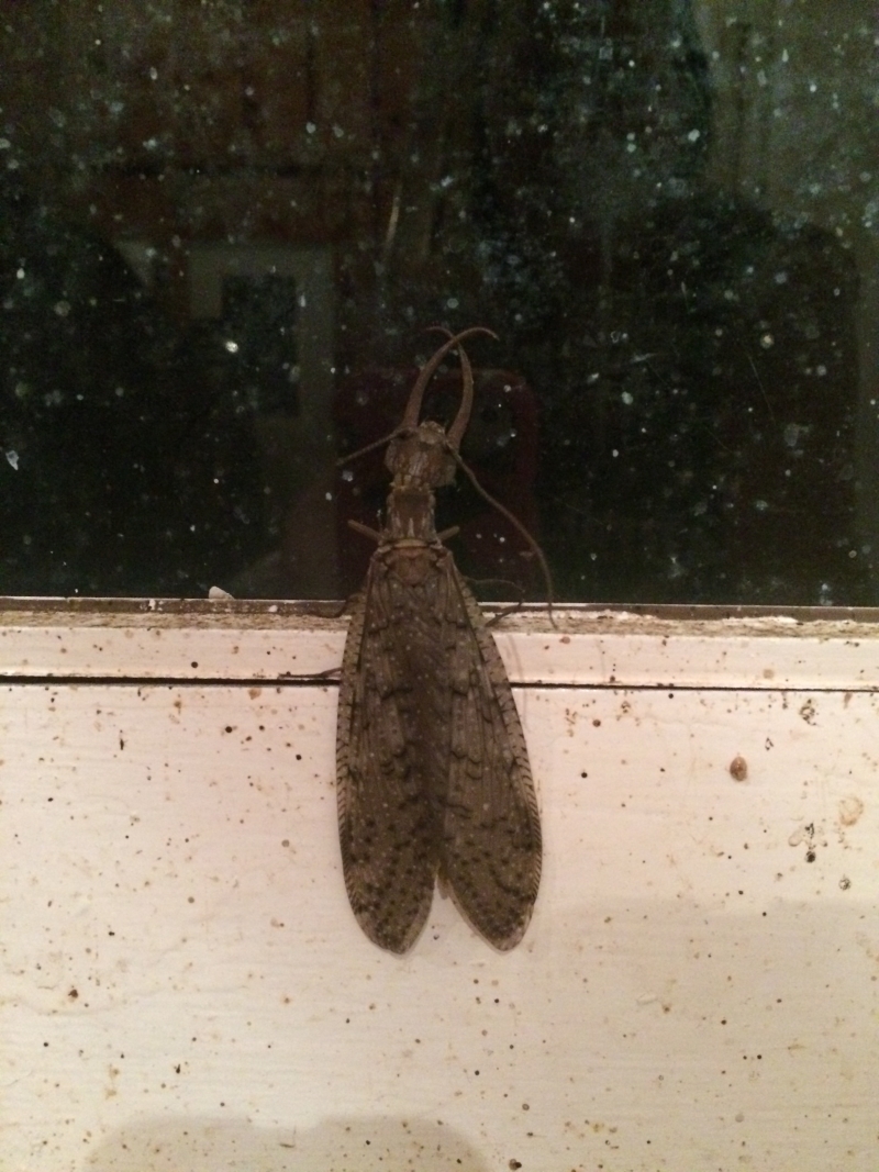 Looks like a dobsonfly. I've found their larvae in some local streams, but never seen an adult. Even the larvae look pretty terrifying.