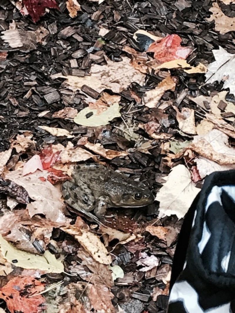 We found frogs everywhere along the trail along a rainy day, with this large Bull Frog.