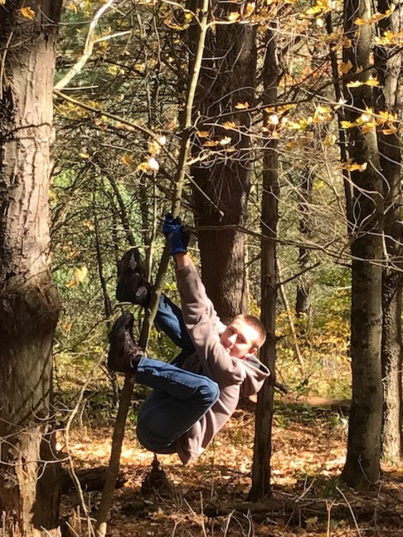 walking to the neighbors to find a strange boy in the wild climbing a new tree.