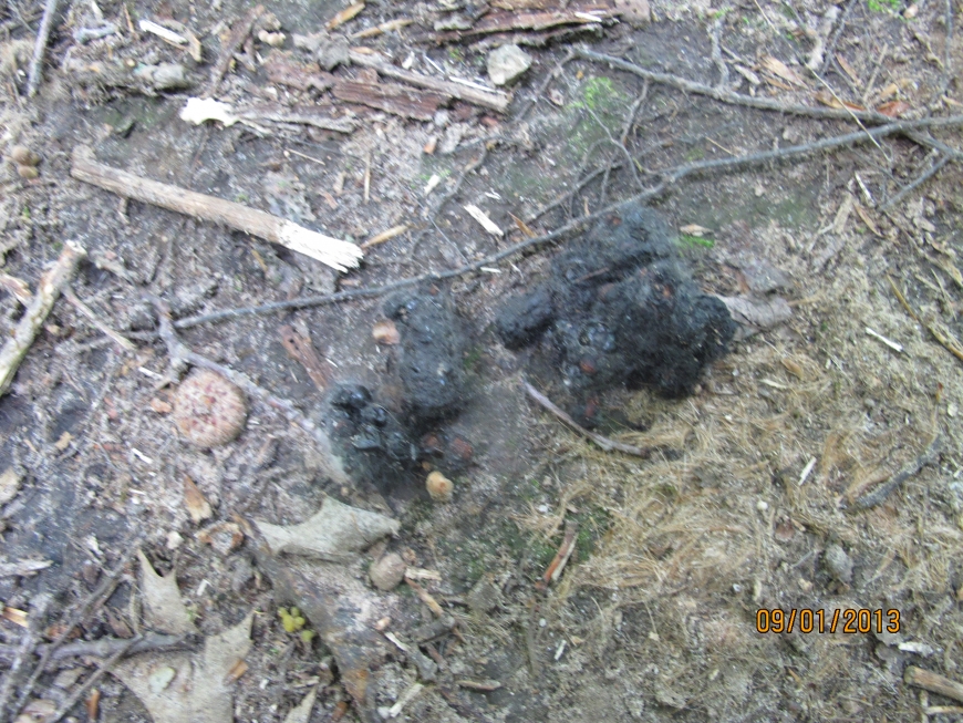 My first reaction to the scat is that it is bear scat; it had a lot of berries in it. Nonetheless, I'm not sure that it is bear scat.