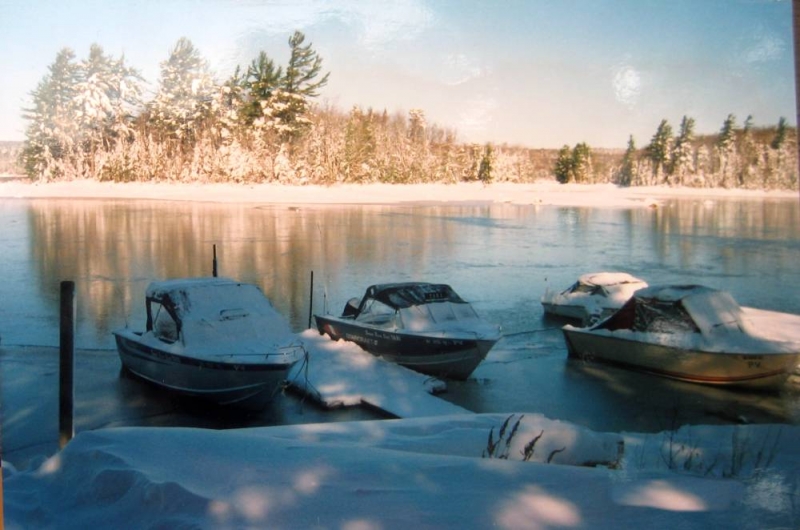 This early snow caught several boats still in the Stillwater Flow. Ice is on the river behind them.