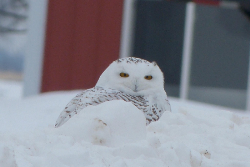 I spotted a Snowy Owl hanging out in a large field. It was amazing to watch it fly effortlessly from a telephone pole, to a tree, and finally landing on the ground in the field. It was very impressive to see how well the coloring of the owl helped it blend into the ground. As I watched it, I couldn't help but to think of all the people who were driving by the field oblivious to this beautiful bird!