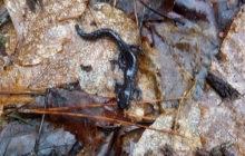 My herpetology class went to Glenmeal State Forest to look for some herps. While looking for salamanders next to a vernal pool, I flipped over some leaves and found an eastern newt (Notophthalmus viridescens) in the eft stage.