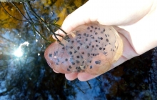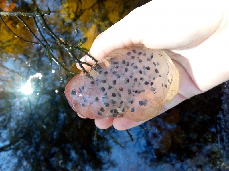 My herpetology class went to Glenmeal State Forest to look for some herps and egg masses. While looking in a vernal pool, I found this spotted salamander (Ambystoma maculatum) egg mass connected to a branch in the water.
