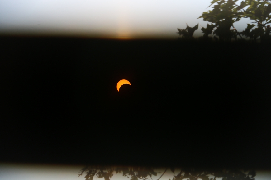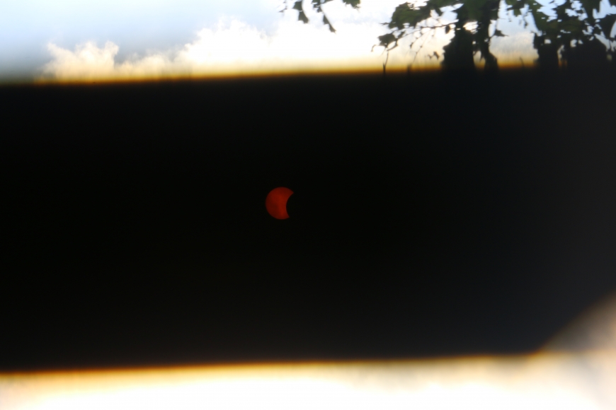 Near maximum extent of the eclipse, taken at approximately 2:30pm (eclipse glasses used to cover camera lens).