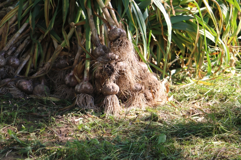 We had a wonderful Garlic Festival this year at Birdsfoot farm, with many friends and community members stopping by to help peel and bunch our garlic harvest. The garlic crop was late this year by nearly two weeks due to the spring/summer rains, and there was some concern over getting all the garlic in and harvested. All worked out in the end though, and we're looking forward to garlic all winter, as are many happy CSA members!