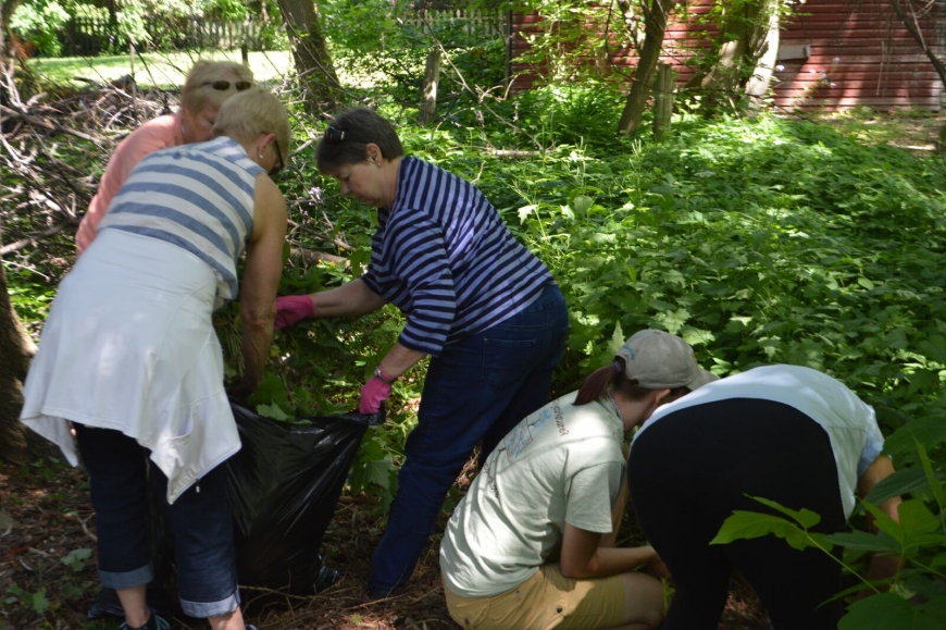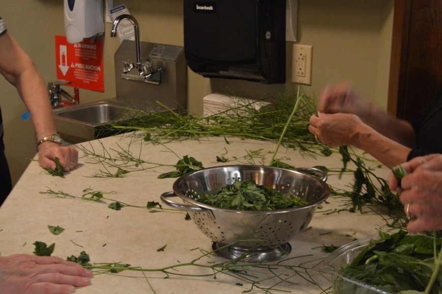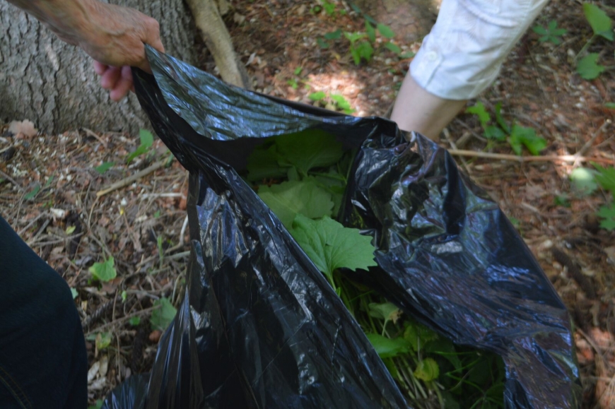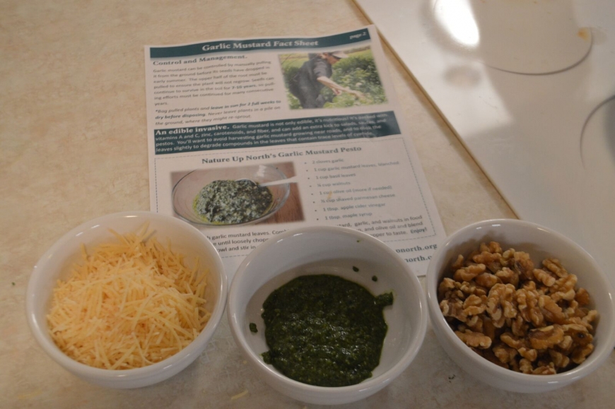 Nature Up North and the Canton Garden Club teamed up this week to pull garlic mustard from where it's growing in Canton and make homemade pesto! Garlic mustard, while invasive today, was a common addition to gardens in the 1800's for the delicious garlic-y flavor of it's leaves. After a successful hour pulling (we collected 7 bags!) we headed back to the TAUNY kitchen to make garlic mustard pesto and share a meal together. Thanks to the Garden Club for their help, and to TAUNY for the use of their beautiful kitchen.