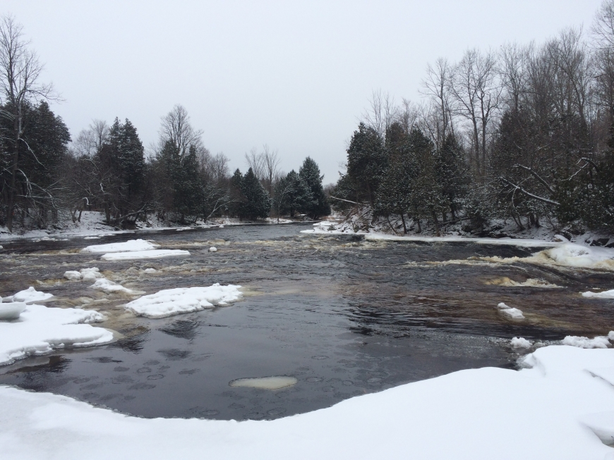 Beautiful trip with a visiting friend down to the Grasse River near Pyrites to see Hart's Falls (also known as Flat Rocks). The water cascades around a bend in the river here and the long flat rocks feature a spattering of well worn holes formed by years of moving water. Owned by The St. Lawrence Land Trust, the spot is a conservation preserve open to the public- worth a visit any time of year!