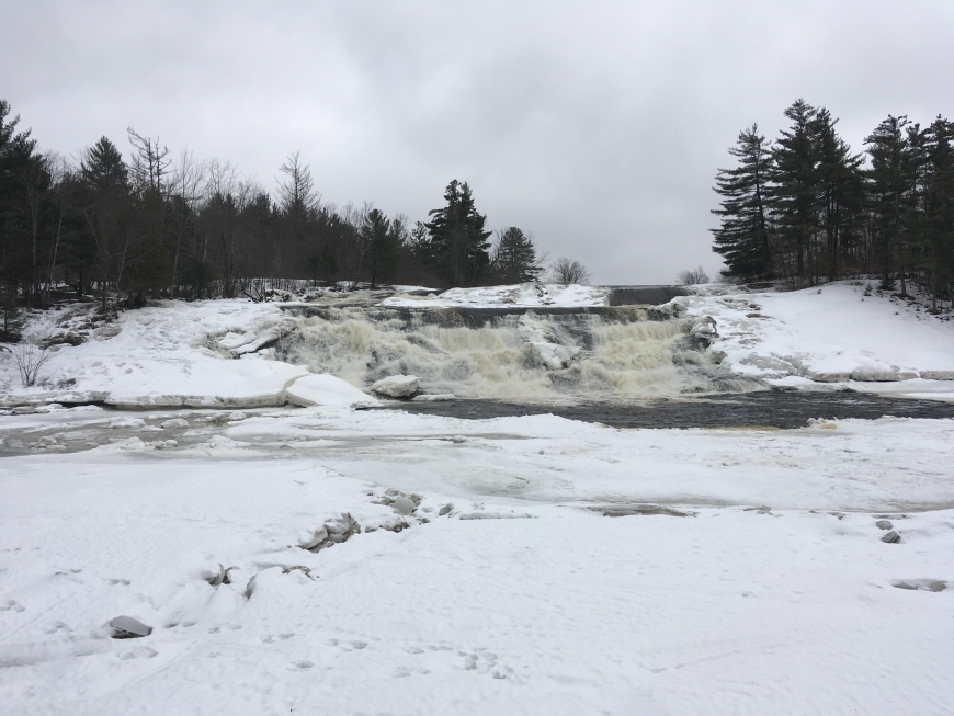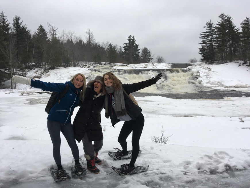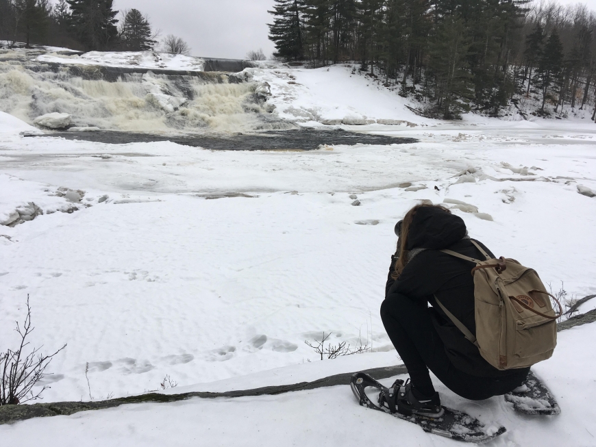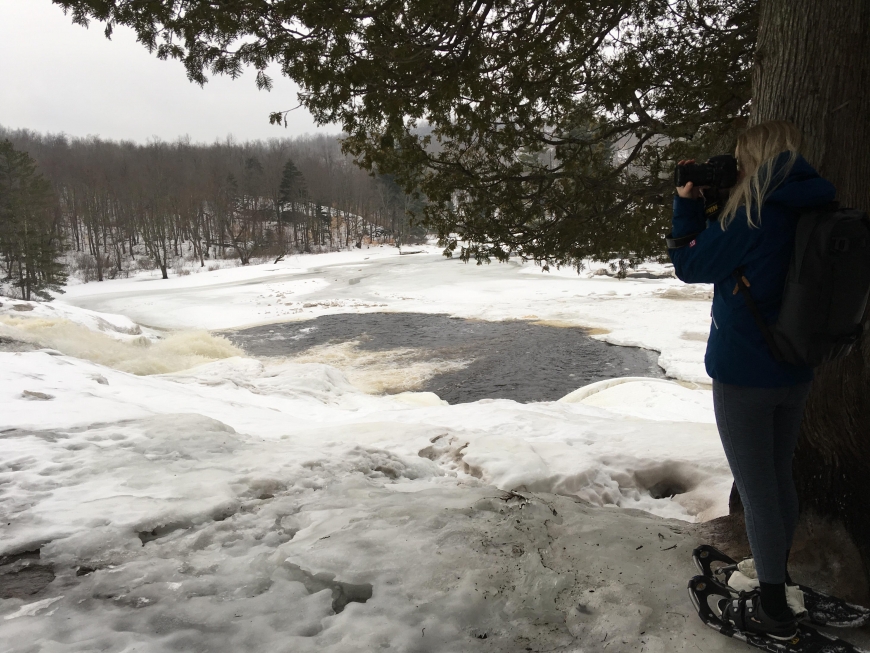 This icy trip to Lampson Falls turned into a memorable first snowshoeing experience for these two young women in the international student program at St. Lawrence - one from Sweden and the other from Finland. Both did an incredible job staying on their feet. Snowshoes or crampons highly recommended to anyone looking to visit the falls, the recent thaw/freeze cycle has made for slippery conditions!