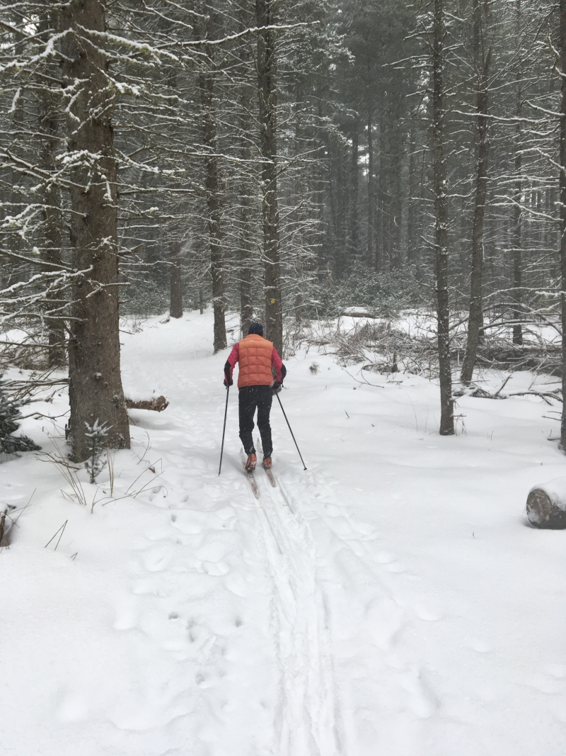 A lovely afternoon skiing with a friend at Higley Flow State Park. Enough snow finally to ski in the woods!
