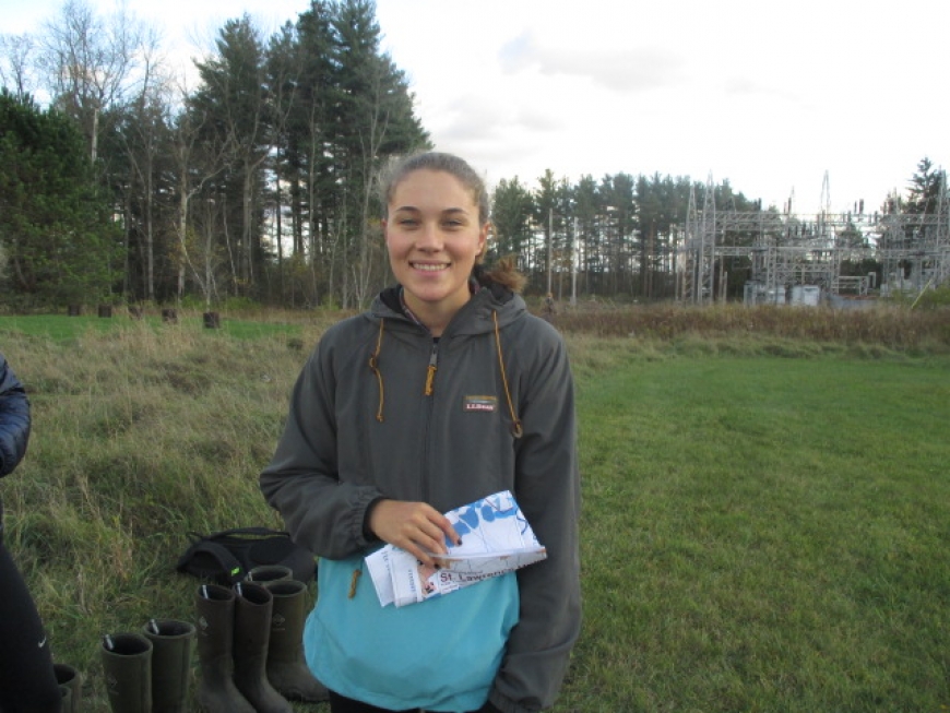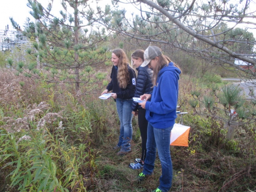 The permanent St. Lawrence Orienteering Course officially launched Friday, November 3rd! The course begins at the Wachtmeister Field Station, near the Kip Trail, and highlights some of the interesting geologic features in the surrounding forest. Thanks to everyone who came out to test the course, despite wetter than wanted conditions. We enjoyed seeing students and community members share map and compass skills and bond over a shared appreciation for time spent out wandering the woods. Special thanks to the SLU GIS program and student technician Anna Breton for creating the course map, and to Brian Berg for setting up the course.