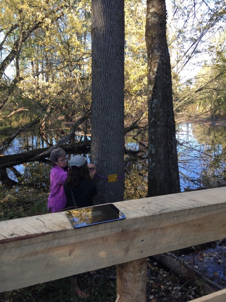 This was the third week of this year's Fall Trails Series, and the group spent a beautiful afternoon exploring the St. Lawrence University Kip Trail. We also talked about the Community Ash Tree Survey - a local effort in response to the arrival of emerald ash borer - and mapped some of the many ash trees on the trail. As a bonus, we spied a porcupine in a large red oak along the way!