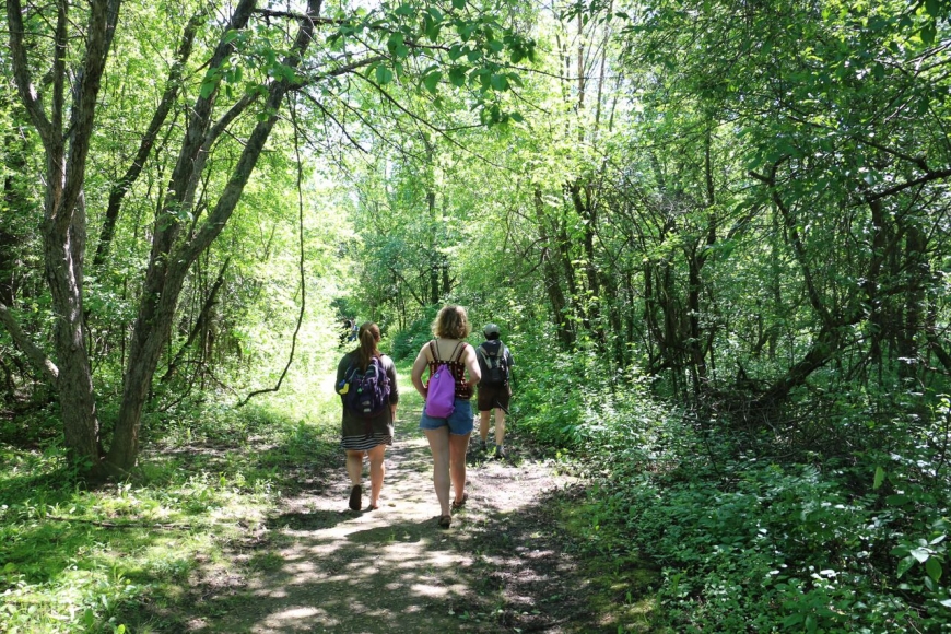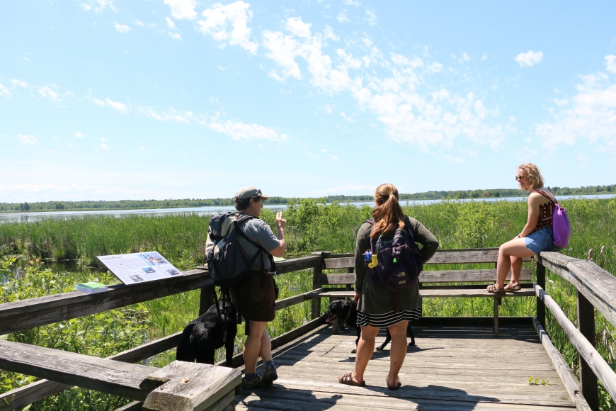 Checking out trees at Indian Creek Nature Center with our new Nature Up North summer naturalist interns Molly and Maya. We had fun keying out some familiar and less familiar species, and the labs had fun getting in water!