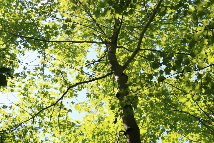 Looking up at the canopy of a young silver maple (Acer saccharinum).