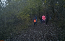 Walking back to my office after a meeting, I noticed a stunned cedar waxwing lying on the ground. I could see its tail moving, so I gently set it up on its feet. Got this photo after righting the bird. I suspect it had flown into a window. The area is planted with juneberry trees (shadbush, Amelanchior) which are in fruit right now and attract lots of cedar waxwings. The second photo is one of the waxwings in one of the trees.