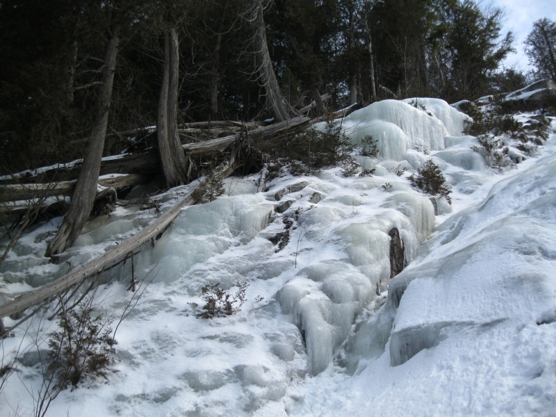 This is a section of fairly steep ice on an Outdoor Program trip I went on in February. We climbed this section and ascended the entire Killburne Slide. I was attracted to the photo because of the interesting ice formations. This is an alpine hardwood forest habitat.