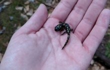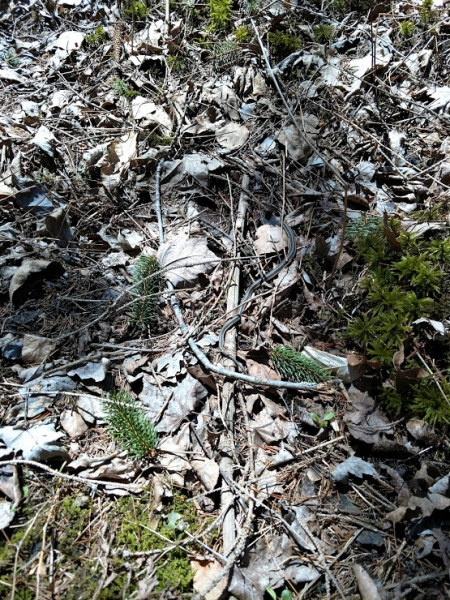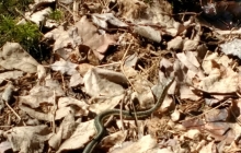 I was out looking for frogs and almost stepped on top of this garter snake! It was basking in a sunny spot next to the water but didn't seem to mind that I had interrupted