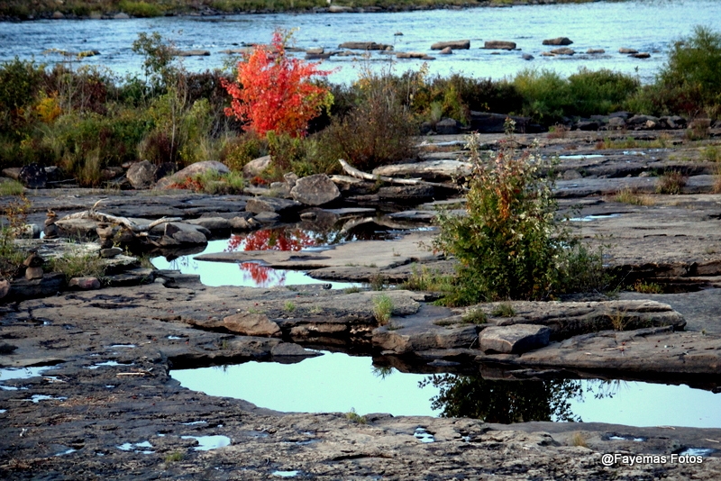 The St. Regis River in Brasher Falls has many areas of flat rocks that form pools. The reflection of a tree with its Autumn colors inspired this photograph.