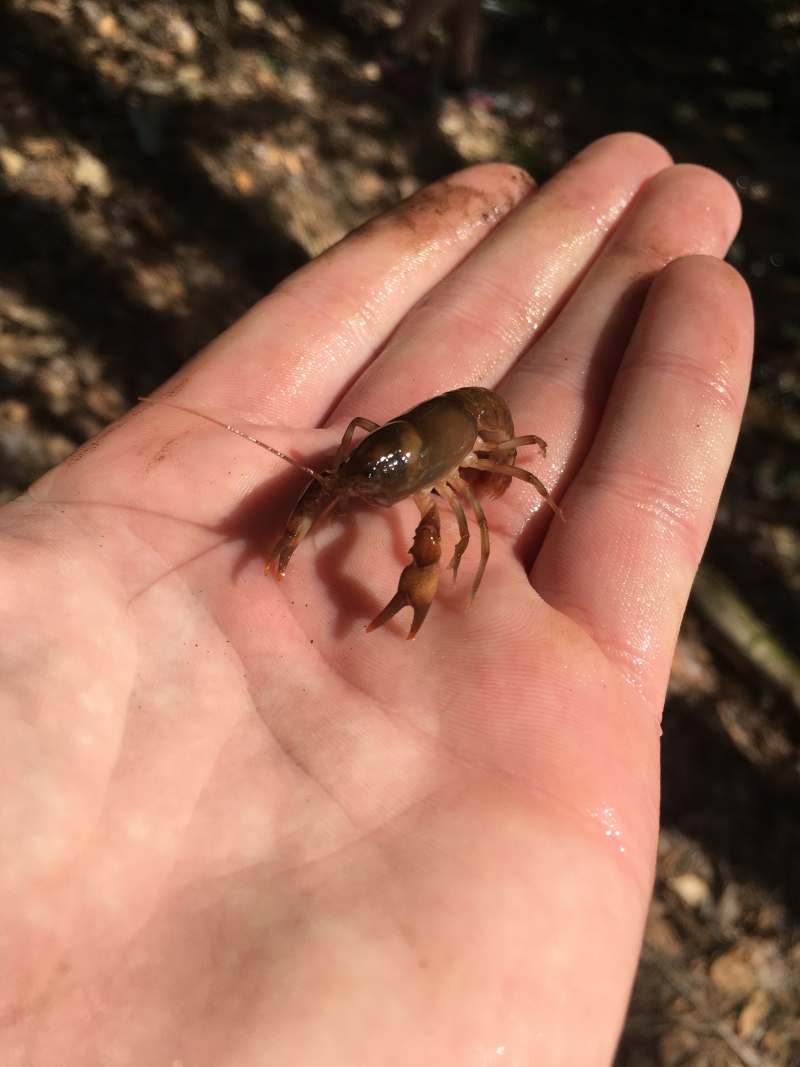 While out trying to find some salamanders that prefer to live in fast moving streams in my herpetology class I found this little crayfish. Surprisingly the little guy didn't pinch me, but was not happy at all to be out of the water. I named it Mr. Pinchy.