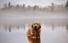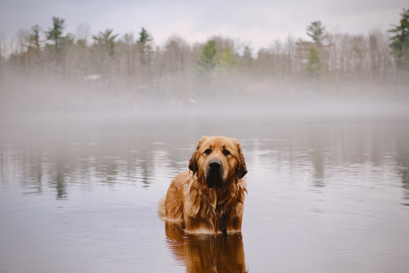 A calm and foggy morning made the Raquette river all the more inviting for a mid-morning swim.