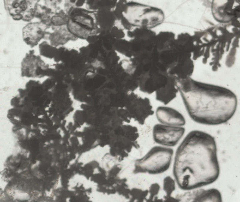 This 2011.1.d1 crystal was collected on January 15, 2011. Using Magano and Lee (1966), this snowflake is classified as āP2dā , which is āa dendritic crystal with sectorlike ends ā. The growth of this snow crystal (and its resultant morphology) was controlled by weather conditions during its decent in the atmosphere. The following atmospheric conditions are recorded by this snow crystal: a temperature of between -12 and -14 degrees Celsius and above the Saturated water line. Basically, this snow crystal records the chaotic series of events from deposition of water vapor on a nucleus (e.g., dust particle) to collection upon reaching the ground. The crystal started to form above the water saturation zone in the sky. The crystals begin to form and fall, adding to the crystal as time passes which creates the sectorlike plates.