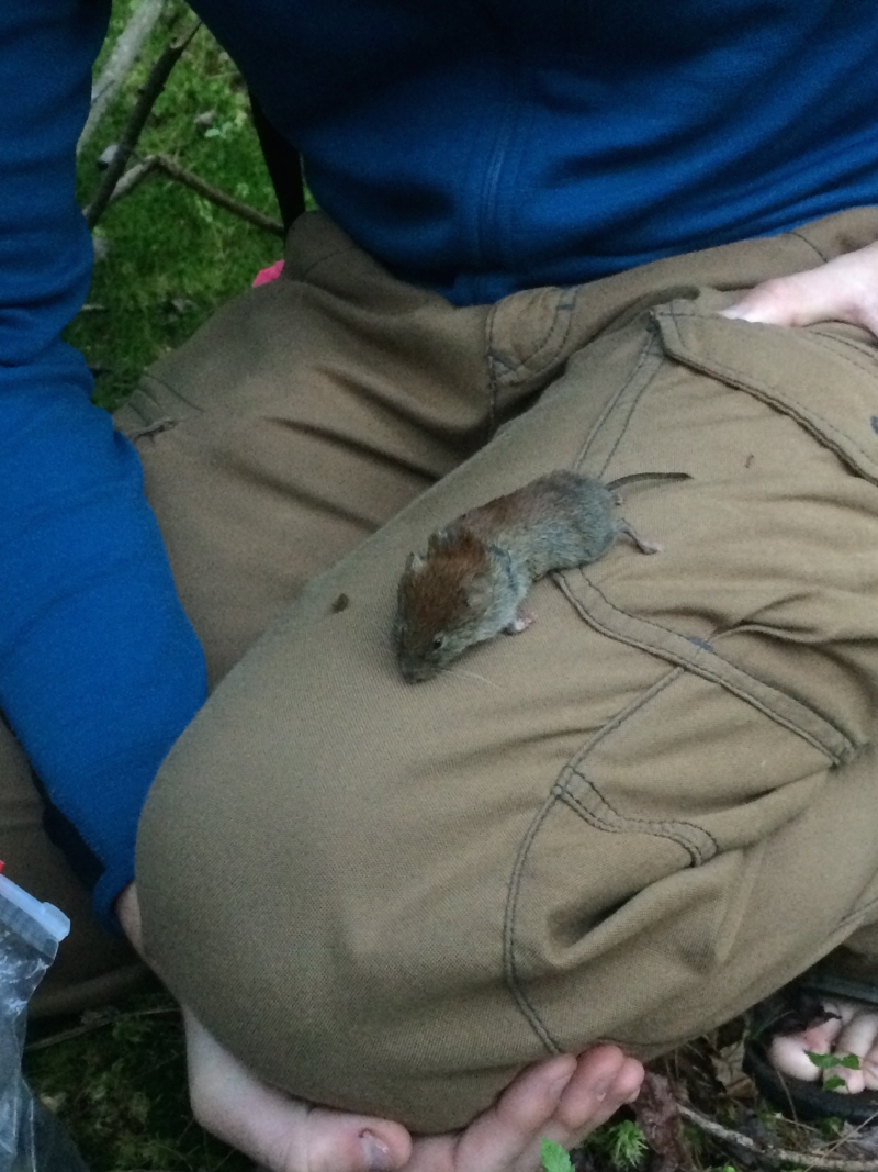 While small mammal trapping on Sunday morning, along with deer mice and a flying squirrel we trapped this red-backed vole.