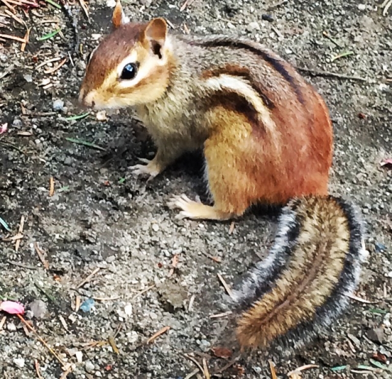 Camping at the Adirondack loj and this chipmunk kept trying to jump into my tent. I didn't have any food, so my coworker cailand and I agreed that chipmunks just like me.