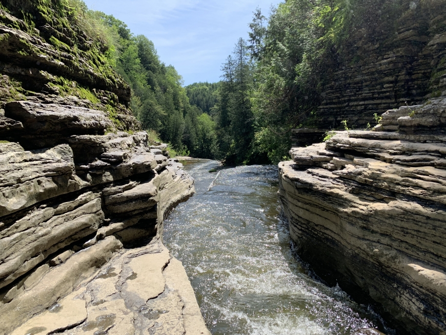 Beautiful river to walk down. Fairly shallow at most parts with dramatic falls about a half mile from the trail head.