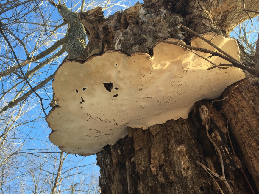 On what was likely my last cross country ski day of the year, I went off trail to explore some untracked woods near the Little River. I stumbled upon what I think is an artist's conk fungus (Ganoderma applanatum) on an old sugar maple trunk. It was approximately 2ft wide. Exact location not revealed so that nobody tries to harvest this impressive specimen. Animal tracks were abundant, including these left by some large bird species.