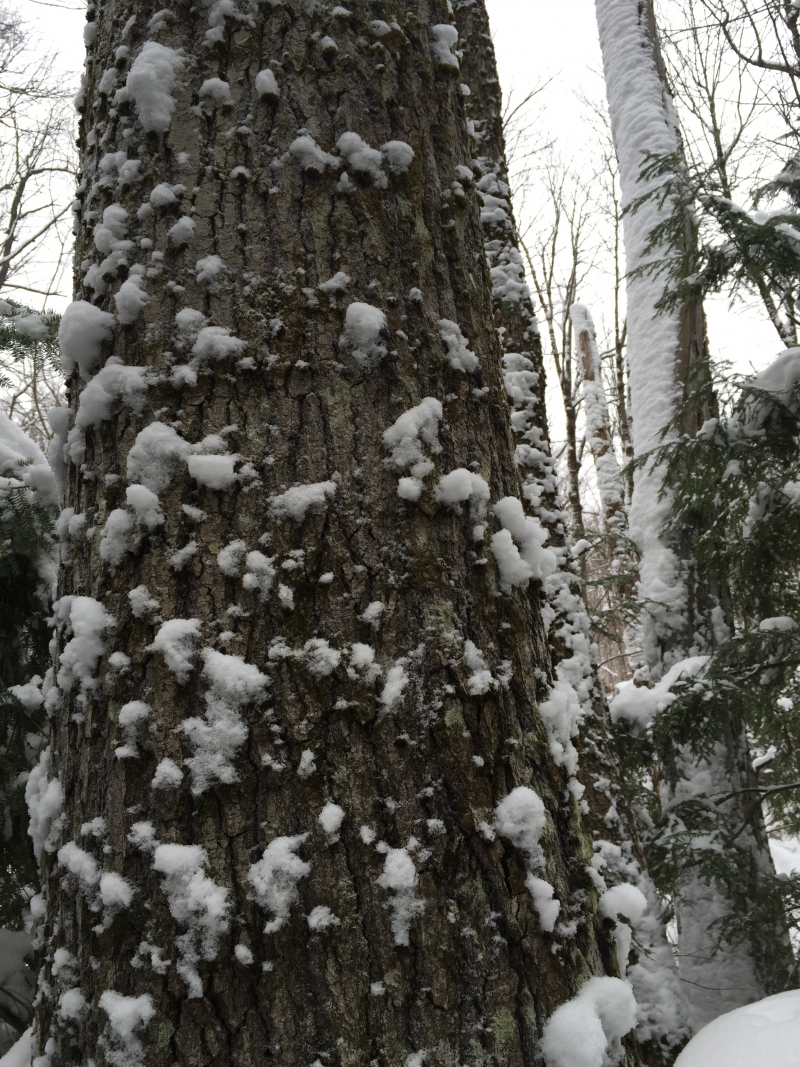 The picture taken is from a beautiful spot in the Adirondack Park Preserve called Stone Valley trail in Colton New, York. This trail is your typical spot to look at any type of North Country species you desire to see. The picture below is a close up of a hardwood tree in the middle of winter. The tree is a older tree by the thickness of the tree. What interest me about this picture is you can see the different adaptions which this tree and the trees behind have taken to survive in the hard winters of the North Country.