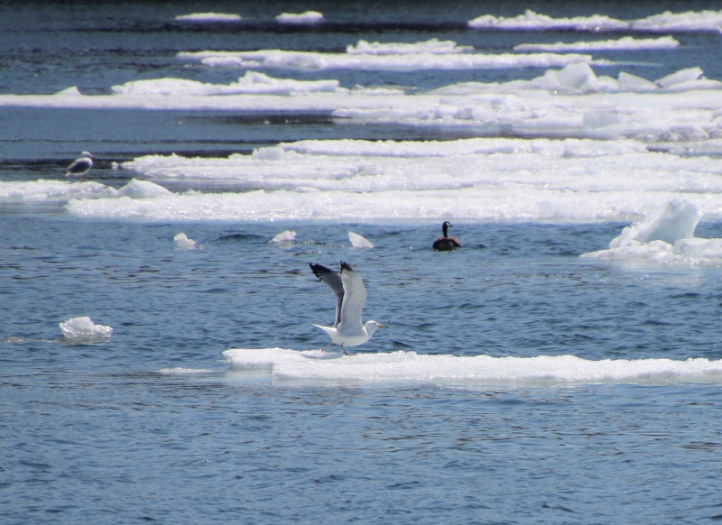 Group hike with the Laurentian chapter of the Adirondack Club at Wellesley Island; Glorious sun; First day that felt like spring; Ice melting right in front of us
