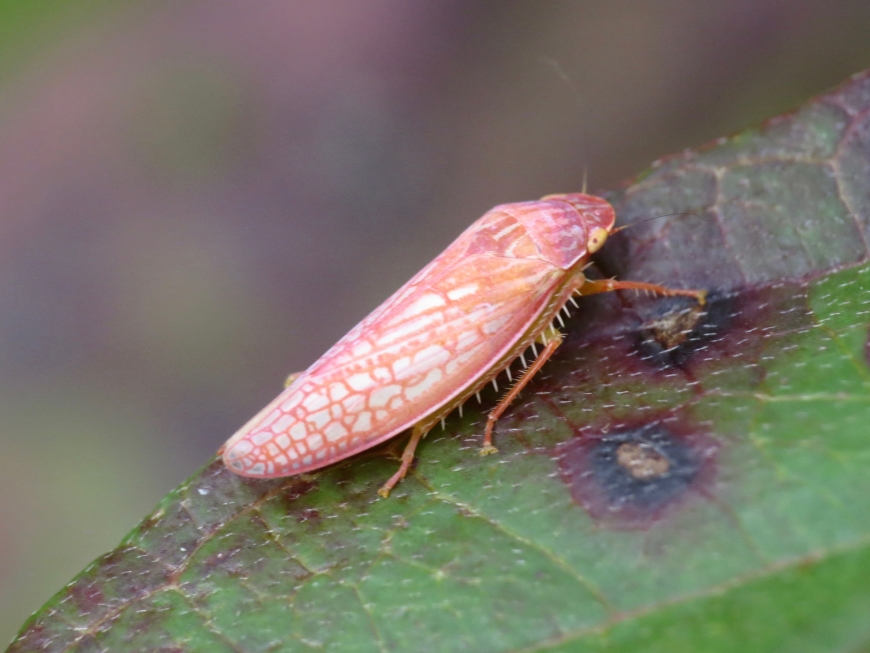 While walking my dog on the Remington Recreation Trail I saw this pink leafhopper, one I had not seen before. A few flower flies were also out on this nice October afternoon.