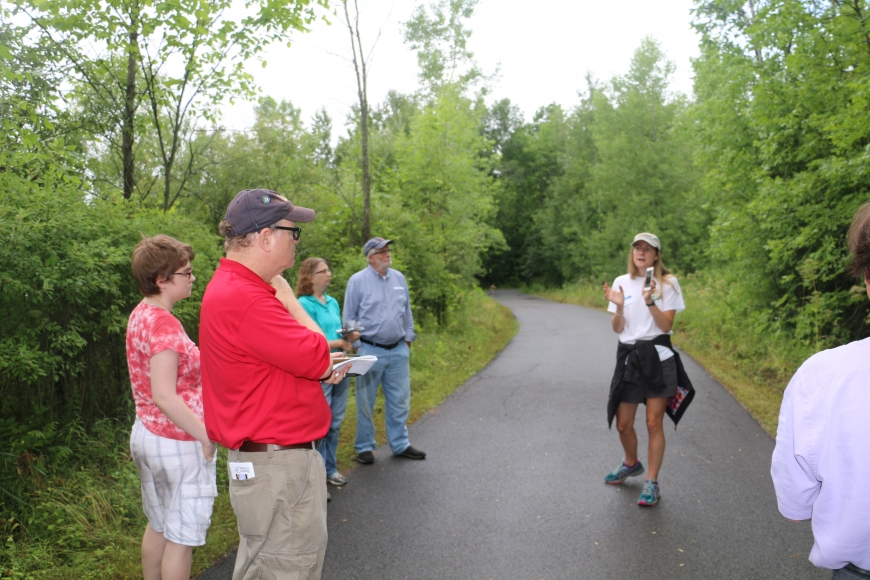 Homeowners and concerned citizens joined us for a walk on the Remington Trail to learn how they can hep monitor and slow the spread of emerald ash borer (EAB). EAB was confirmed in St. Lawrence County last August and is already on the way to becoming a public safety concern. Infested trees can die in 1-3 years, and are at risk of falling on homes and powerlines. Together, we learned how to I.D. an ash tree and signs of infestation. Using our Community Ash Tree Survey, citizens can contribute to our online visual database and monitor infestation throughout the county.