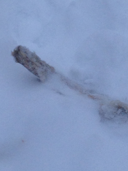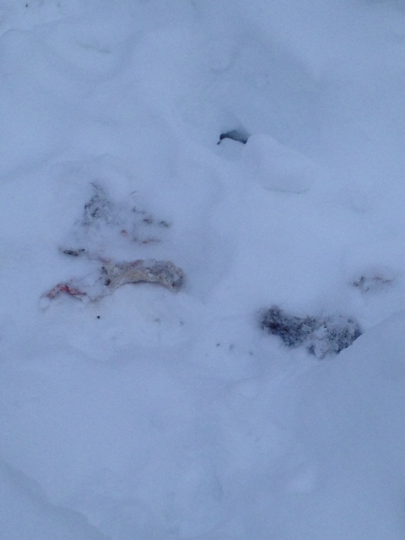 Erika posted a rabbit kill in her yard yesterday, and I also noticed one while running at Partridge on Tuesday. Seems it's that time in winter where rabbits are having to move farther from home to find food, and predators are taking notice.