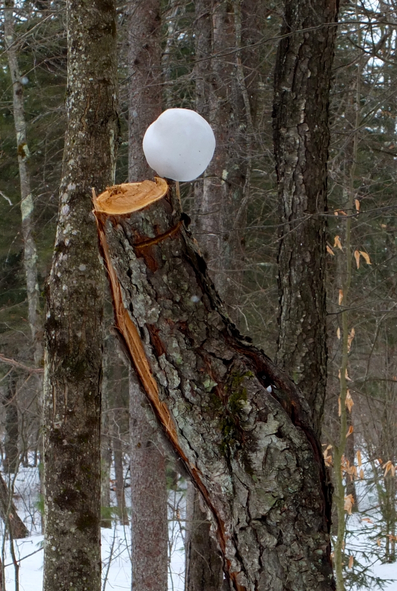 CLOSE UP 2: This was another picture of the perfect, wet, snowball snow at Lampson Falls. This was taken in the wooded area on the path to the actual falls. I liked how precariously this snowball was balancing on this tall stump. It reminded me of Andy Goldsworthy's work creating beautiful, impossible sculptures out of natural materials.