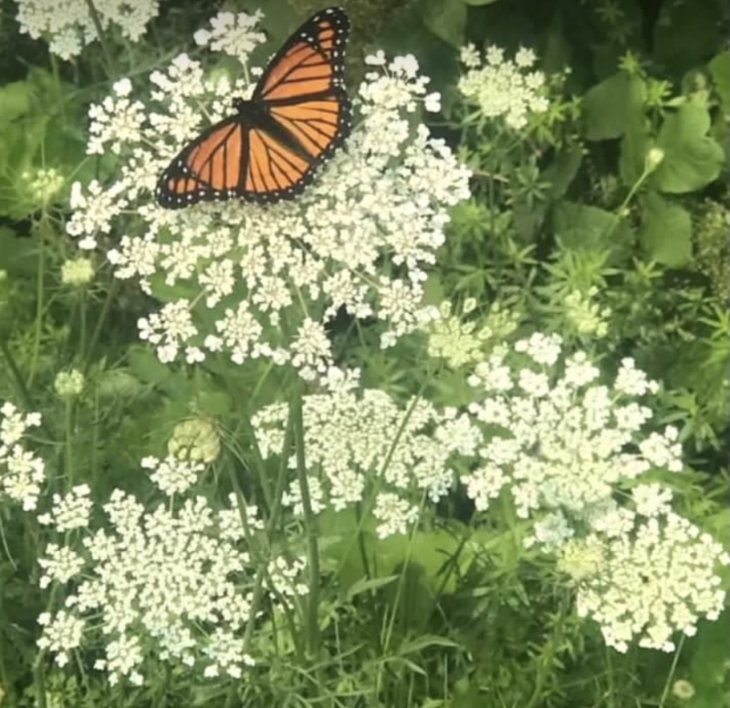 These are one of my favorite flowers, I love seeing them around the North Country! And having a butterfly on them to! So beautiful! What a great photo!