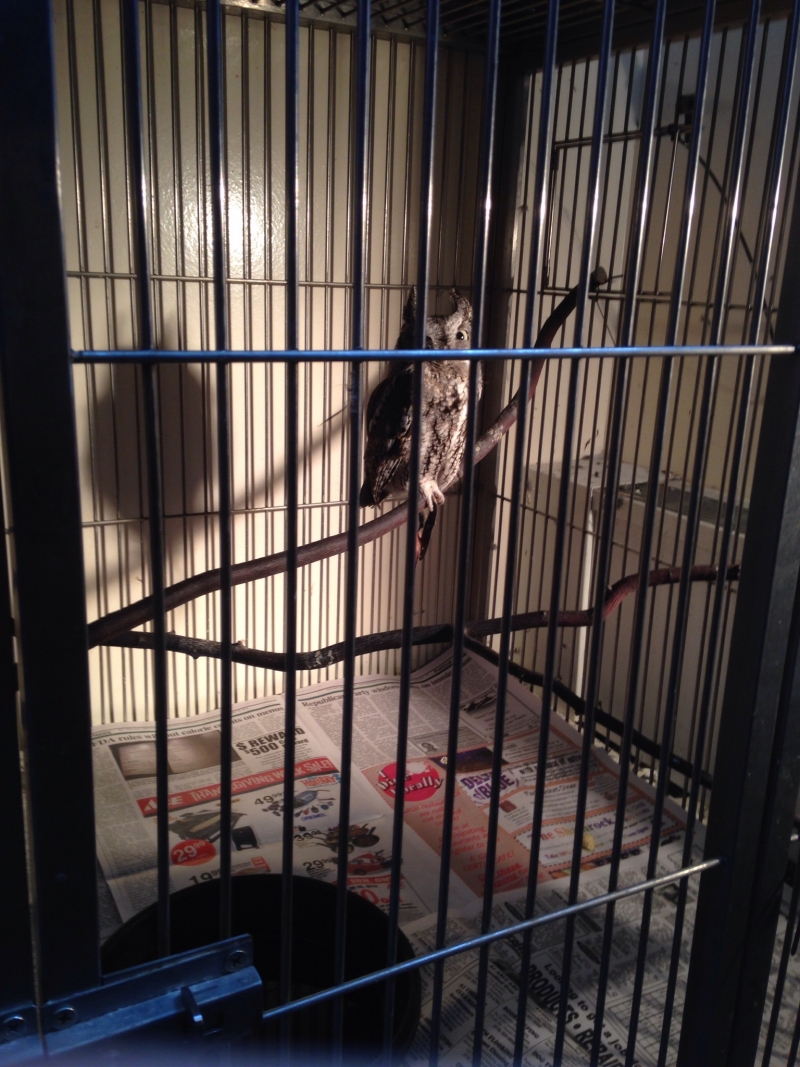 I took this photo at the Wild Center in Tupper Lake, near the center of the Adirondacks. This natural history museum is surrounded by an 81 acre trail-filled campus and is home to approximately 50 species of live animals. Many of these animals are in their natural habitats, but unfortunately this grey horn owl had an injured wing and was in recovery. This photo displays the dedication and the love for animals of the employees at the Wild Center. The Wild Center features live animal exhibits of river otters, birds, fish and amphibians that I highly recommend seeing