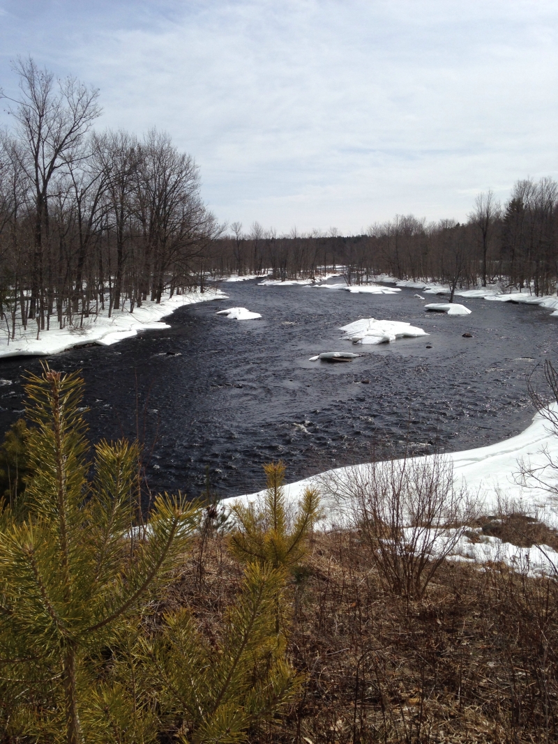 There are many natural highlights at the Red Sandstone Trail in Potsdam, including the Hannawa gorge with its class four rapids, The Sugar Island Flow, and a predominant pine, hemlock and beech forest. This four season trail is perfect if you are looking to get out and experience the call of the wild close at hand. I took this shot on top of a hill that overlooks the river. This image captures the magnificent flow of the water moving northward. A great image overall!