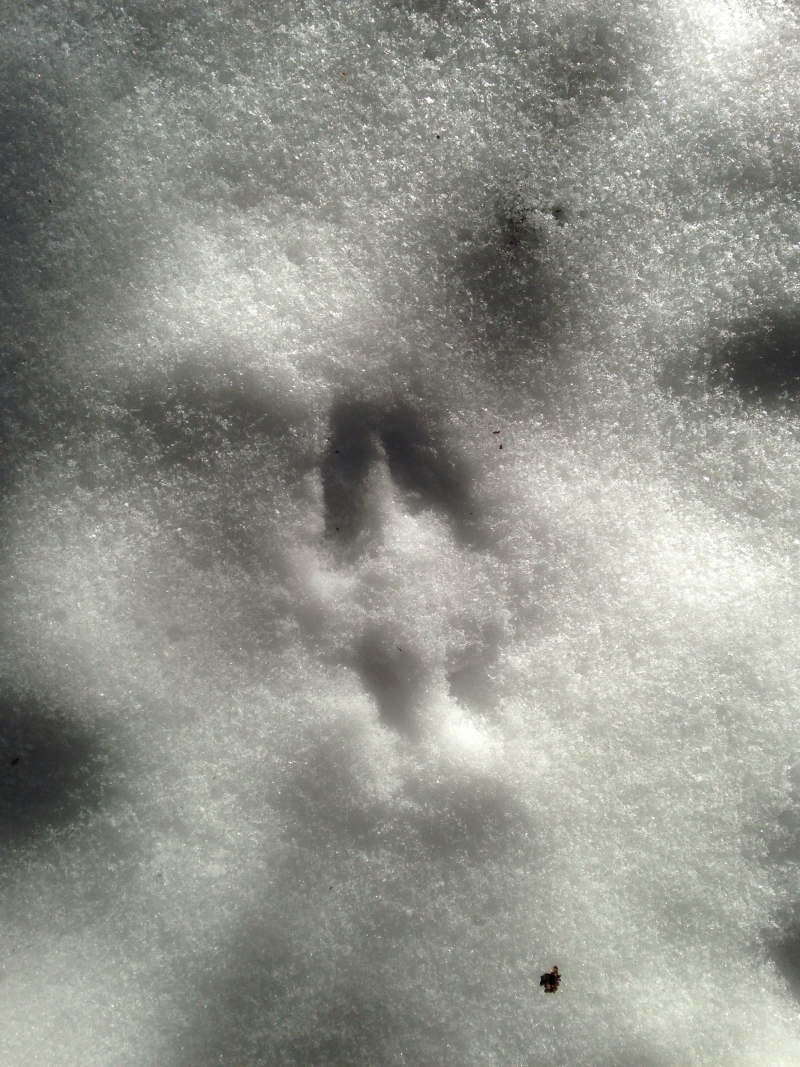 As I was skiing I noticed a deer track perfectly imprinted in the snow. I happened to ski upon it when i was in the forest. I happened to like how big the track was, although it may look small in the picture. It was really interesting to see this track and it particularly caught my eye because i actually saw it about ten feet away from a bedding area. Really awesome image. Higley doesn't dissapoint!