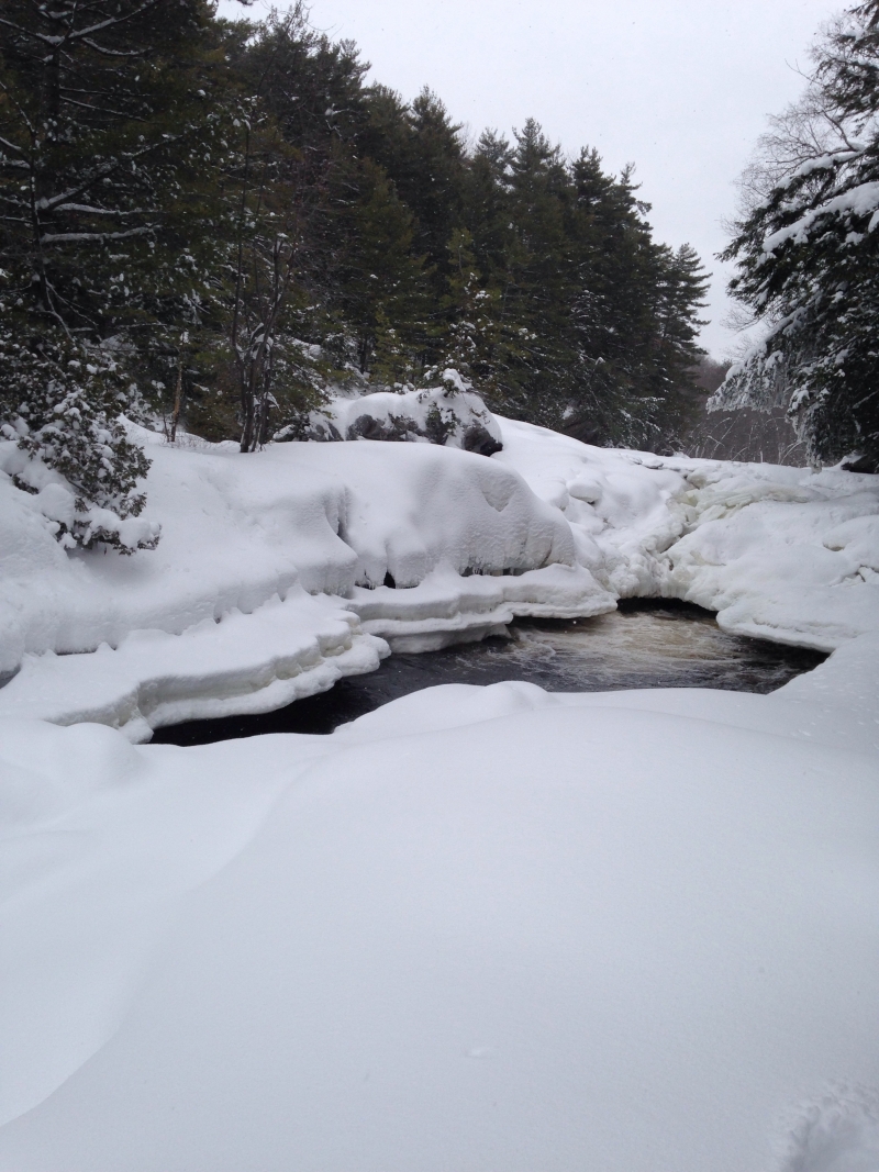 I viewed many great sites at Stone Valley but this was my favorite. I snowshoed up a rock cliff that looked down into this rapid gorge, which was a wonderful site. The image really gives you a sense of how much snow the North Country receives, and the opening where you can see the water is just breathtaking. It was a lot of fun hiking up to this point because you had to walk across the ice over the river to get to it. This is just one of Stone Valleys many gorges, rapids and chutes.