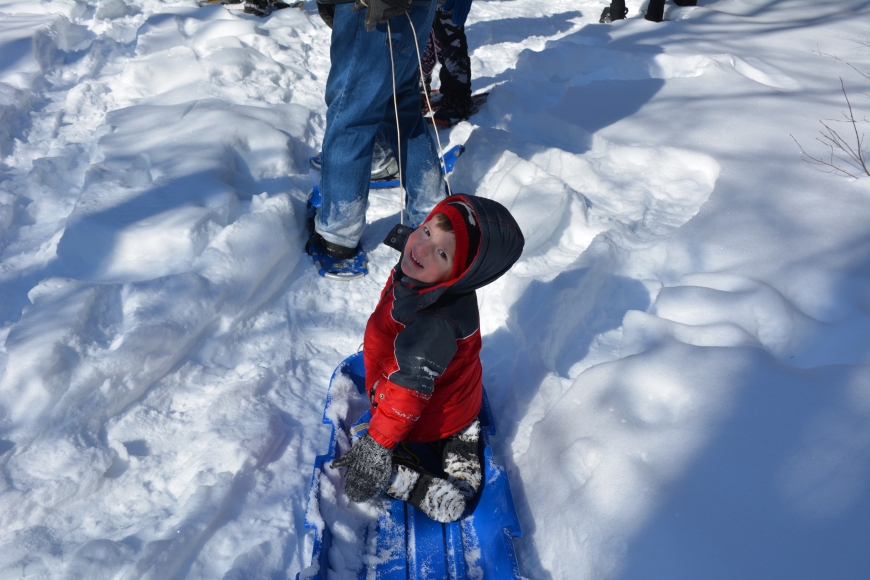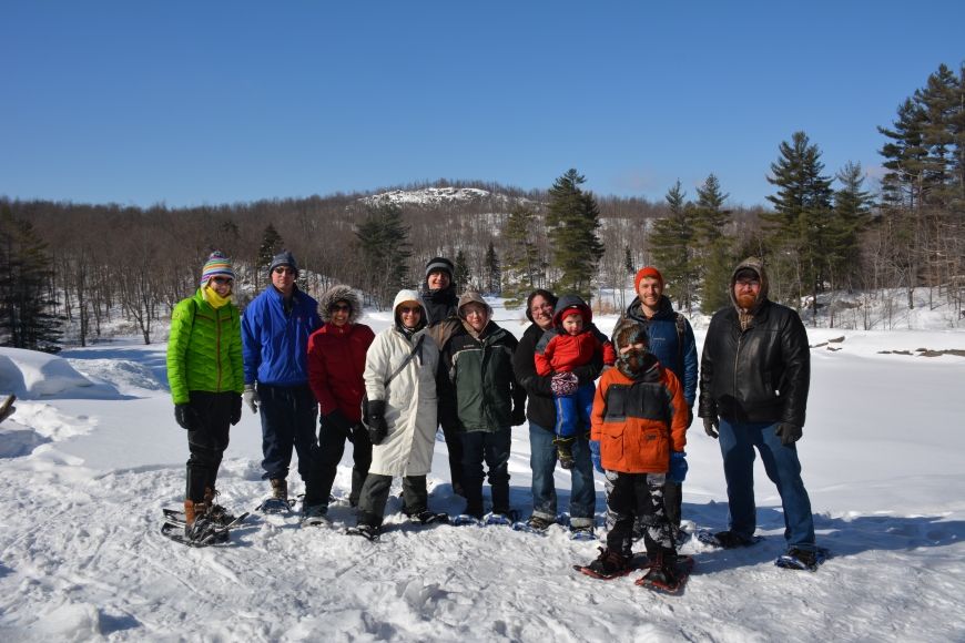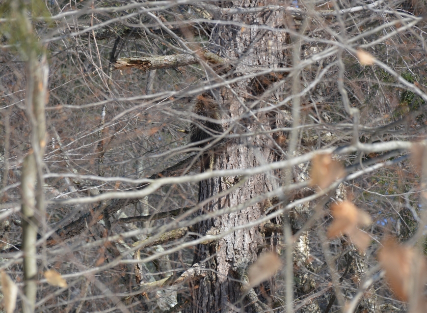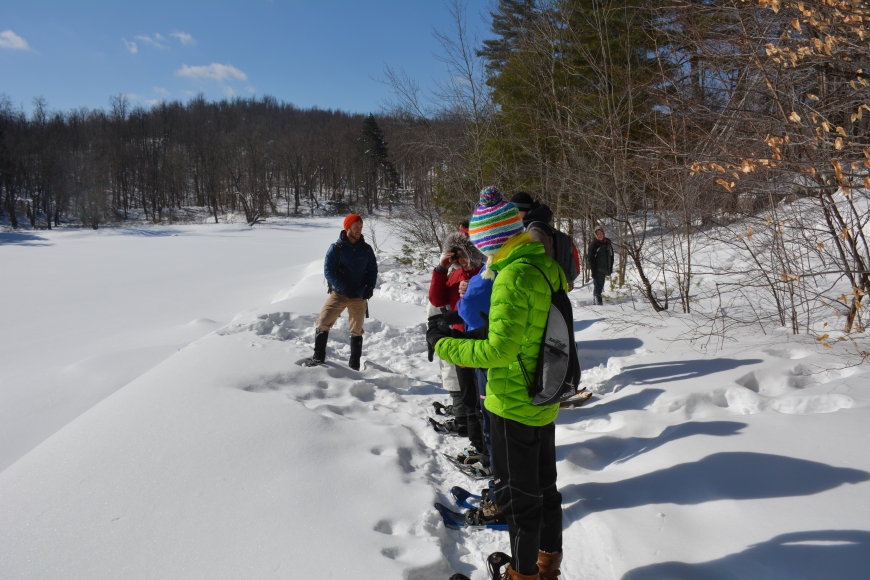 Two members of the Nature Up North crew led a snowshoe hike around the Lampson Falls trail network. It was a beautiful day filled with wonderful views and great company. We were even able to see a porcupine climbing up a hemlock tree to grab an afternoon snack.
