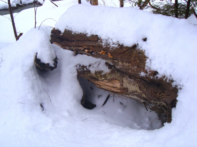 While for many humans snow can casually be disregarded as nuisance or a recreational perk, it can be a life-saving blessing for many land mammals, particularly rodents. The evidence lies in a sharp decline in rodents in the North Country following a dry winter with little snow. In the winter, animals depend on natural shelters for protection, storage, and temperature regulation. Many animals find comfort in hybrid spaces that result from previous structures (such as trees and rocks) getting snowed over. This type of shelter can exist in areas of low snow and can form quickly (shelter made exclusively of snow requires much more time and many more layers of snow). Although cold when touched, snow contains large amounts of air, which functions as a powerful insulator and regulator of heat—an imperative necessity for North Country animals. Snow also serves as a camouflage device from air predators such as hawks; smaller rodents will crawl into the small space between snow and land, while other adapted organisms such as the snowshoe hare can use its while coat to blend into the glowing white surface.