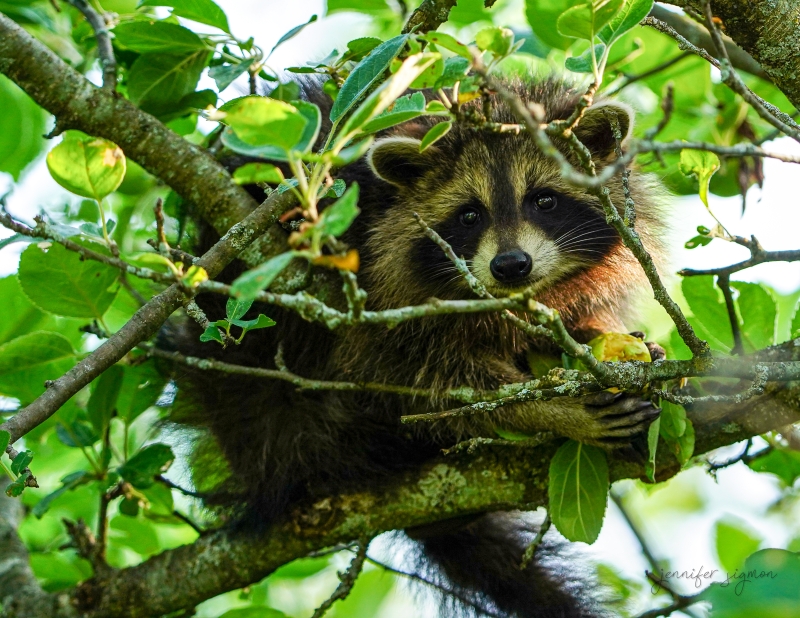 I heard a rustling in the fruit trees and looked over to find a pair of young racoons eating apples. They ate apples until they fell asleep in each others arms.