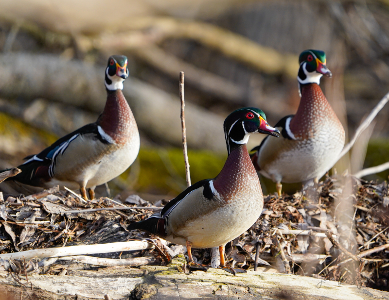 Of course, after I set myself up between the trunks of trees facing the water, a group of beautiful male wood ducks flew in and landed in the woods behind me. I carefully twisted myself into a pretzel and got down low, so low I was sitting in the water. I was able to focus through the branches of some downed trees. I am still going through the series and finding some gems. If you are a bird nerd, you know how skittish these beautiful ducks can be. A few times I thought they spotted me or at least heard the sound of my camera.