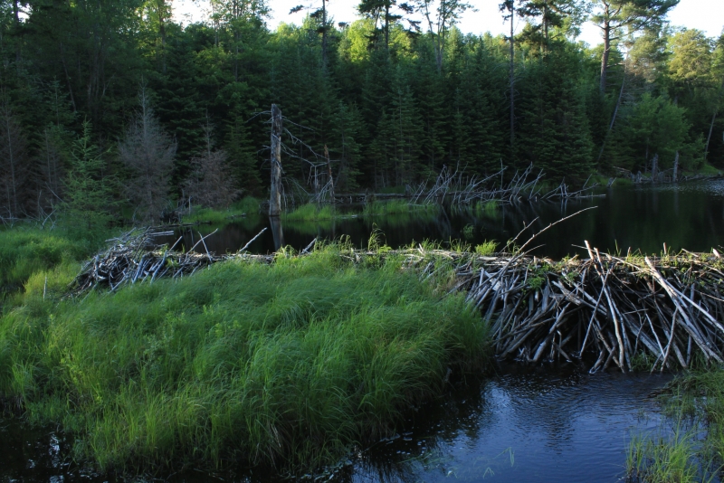 On a two-day backpacking trip around the High Falls Loop, starting from Wanakena and passing by Cranberry Lake, I came across this beautifully constructed beaver dam. I had crossed several beaver dams over the course of the day but this one stood out right at the edge of the swampy trail. I had to stop to marvel at the work of nature's architects for a few minutes before the sun began to drop below the trees. What an amazing sight to see!