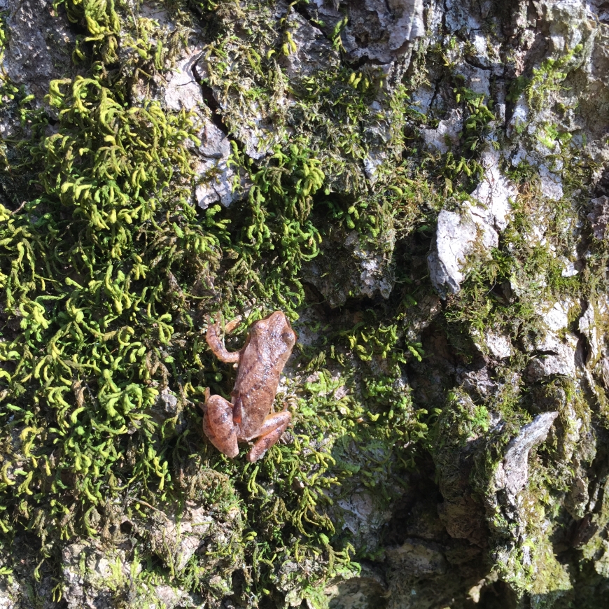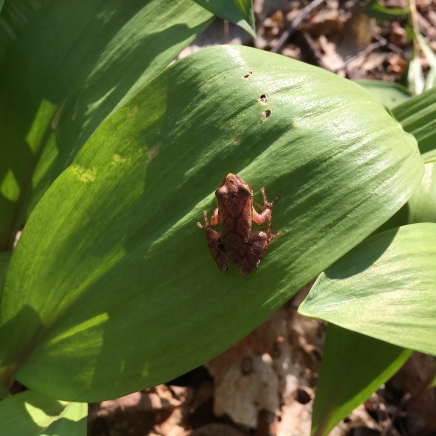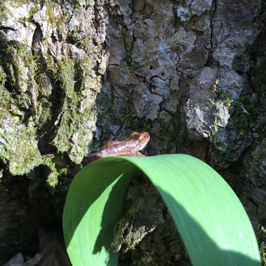 I found this little spring peeper hopping among the wild leeks this afternoon. Without the green leaves of the wild leeks, he blended right in with the ground and was hard to spot.