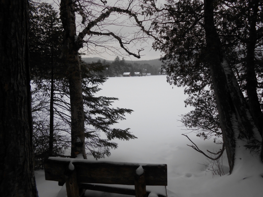 After a three hour drive we started off the day snowshoeing in Lake Placid. The trail we started on was the section of the Jackrabbit Trail where the Ho-Jo's used to be. Once we came to the connection to the Brewster Peninsula trail we switched to get a view of the lake shore. After we were done we returned to Saranac Lake to watch the fireworks at the Ice Palace.