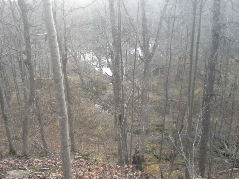 View of a beaver dam pond from the ledge behind my house.